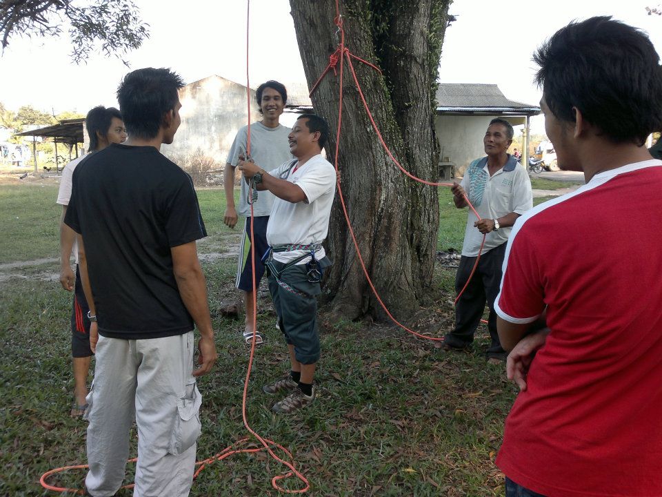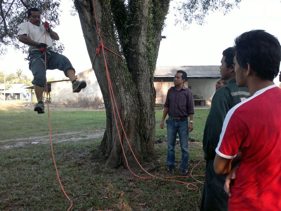 Pengalaman pertama memanjat pokok menggunakan tali.
